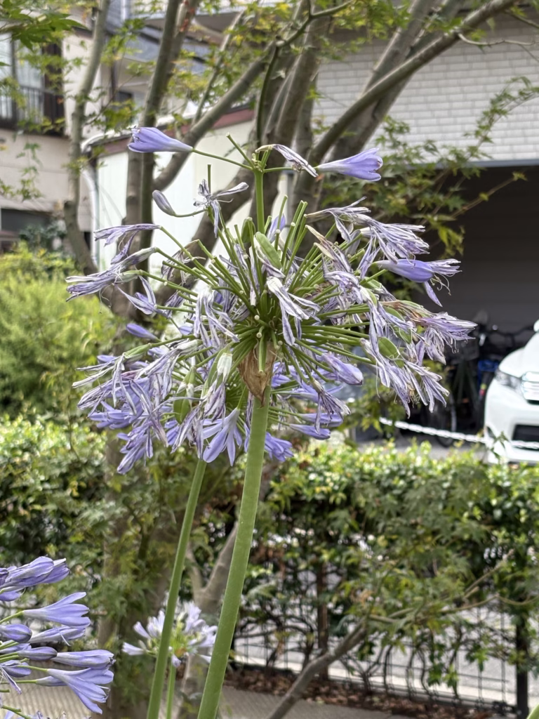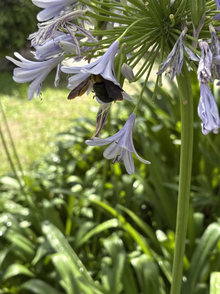 アガパンサスの花がらの除去に着手した直後にクマバチが来たのは